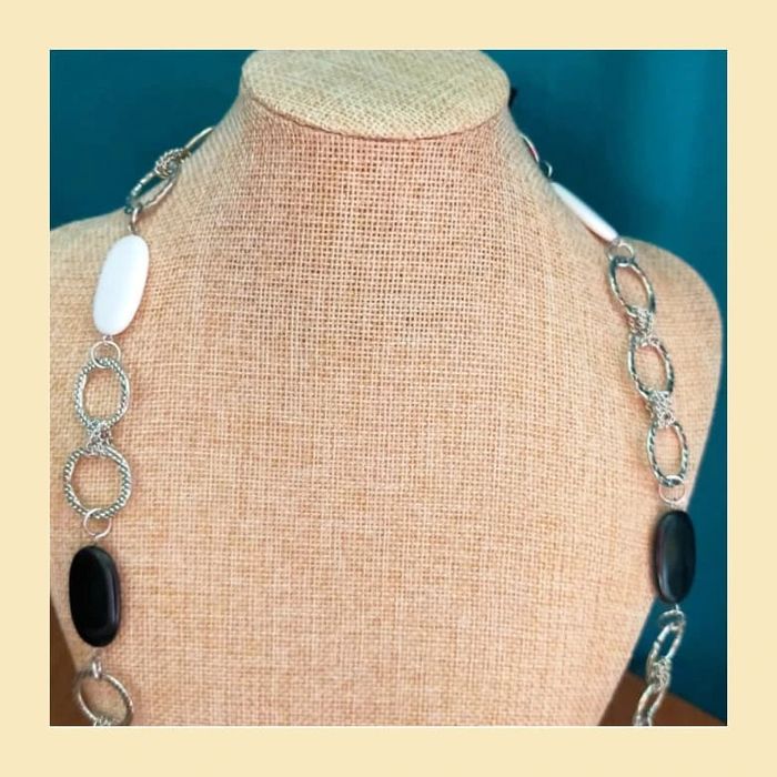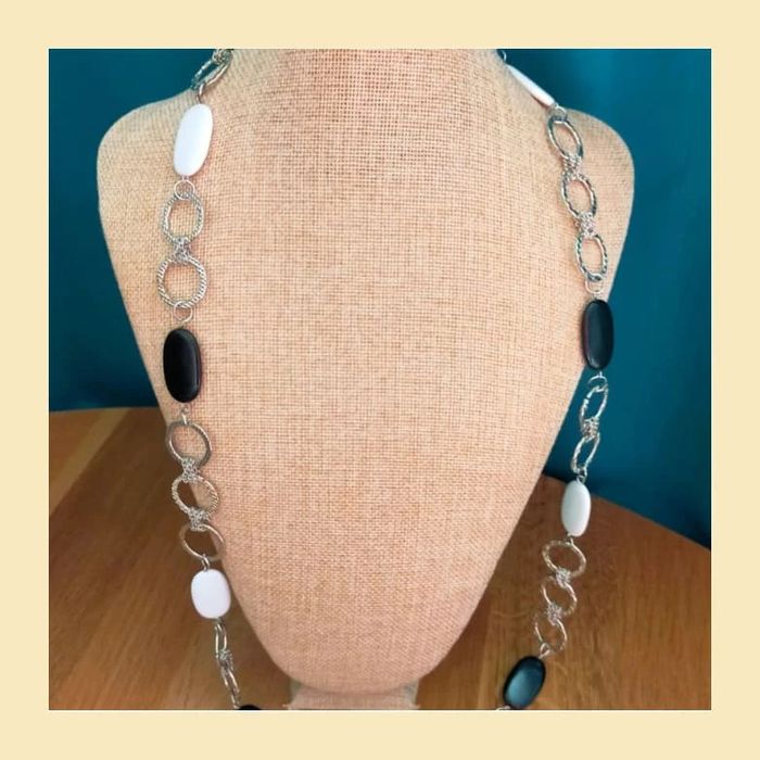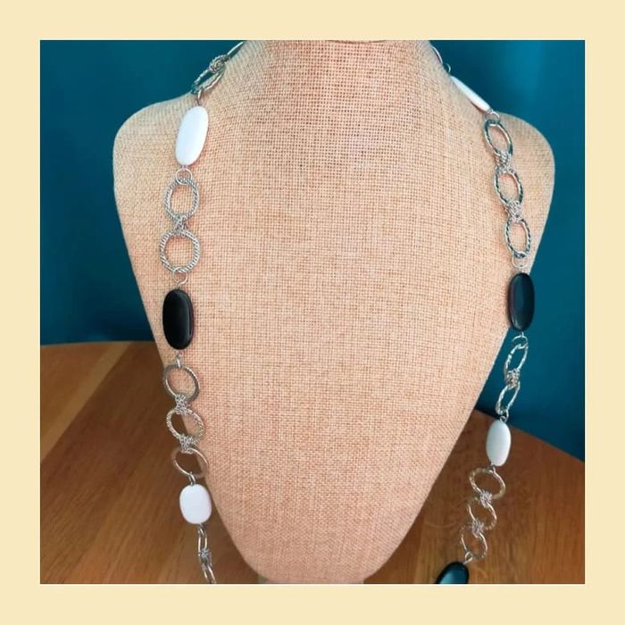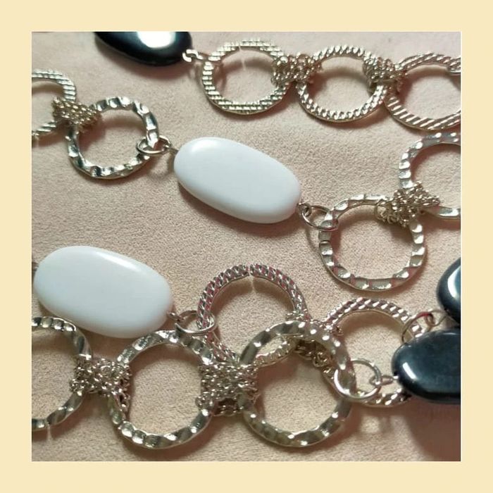 Collier fantaisie noir & blanc – Maillons argentés texturés - photo numéro 1