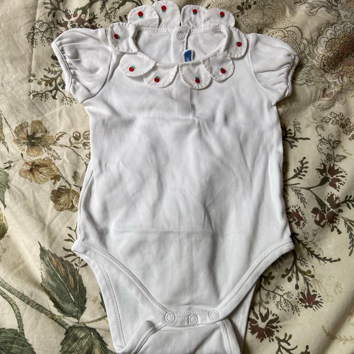 🍓 body blanc pétale framboise de la marque Jacadi en très bon état taille 6 mois