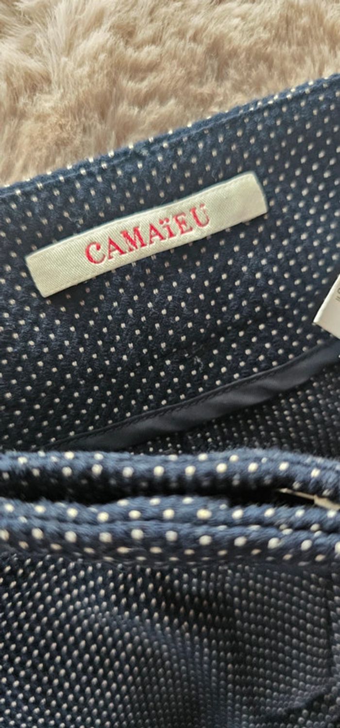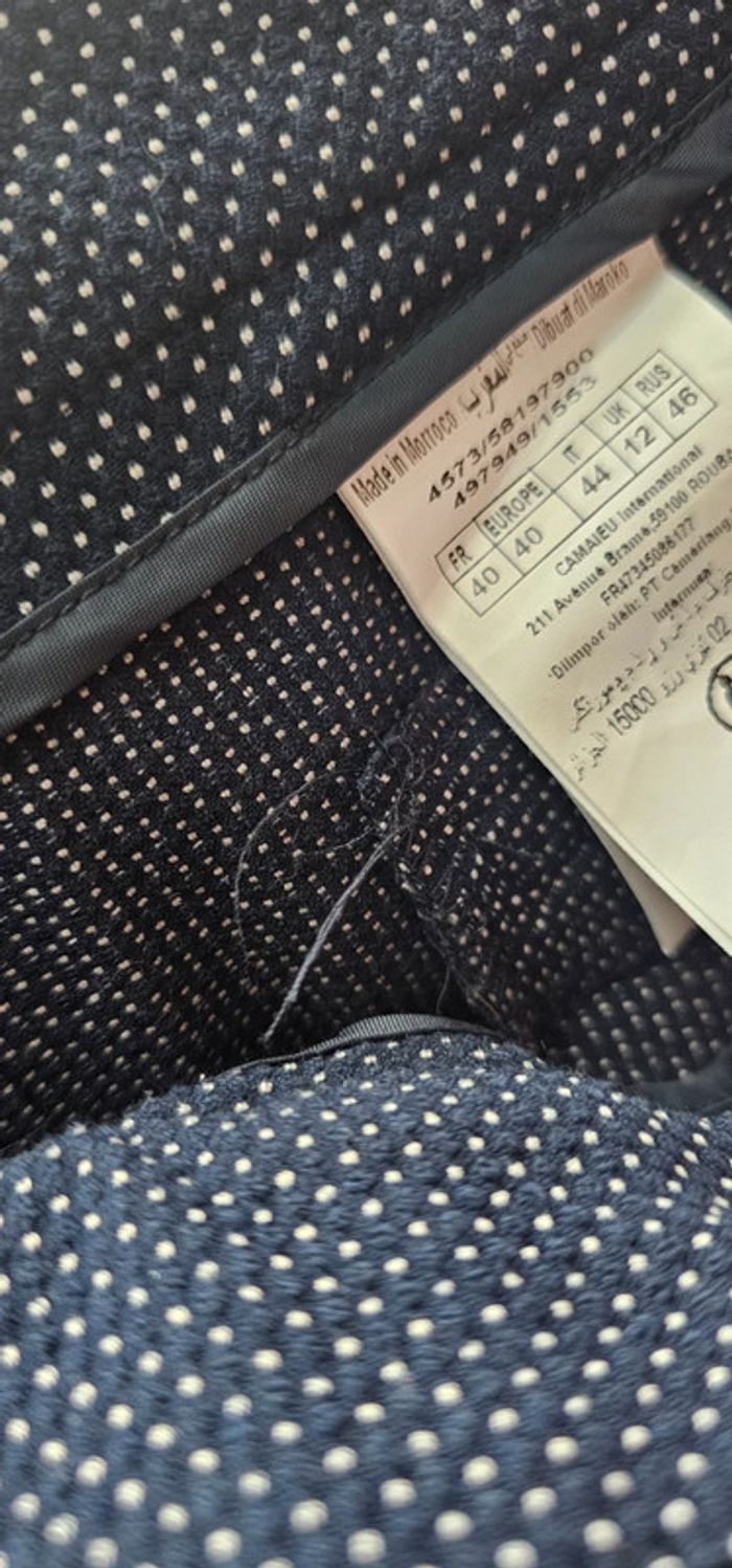 Chino marine petit point blanc Camaïeu très belle qualité porté 1 fois matiere hyper agréable vendu cause perte de poids