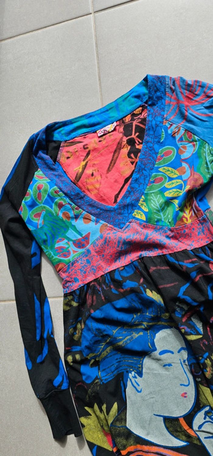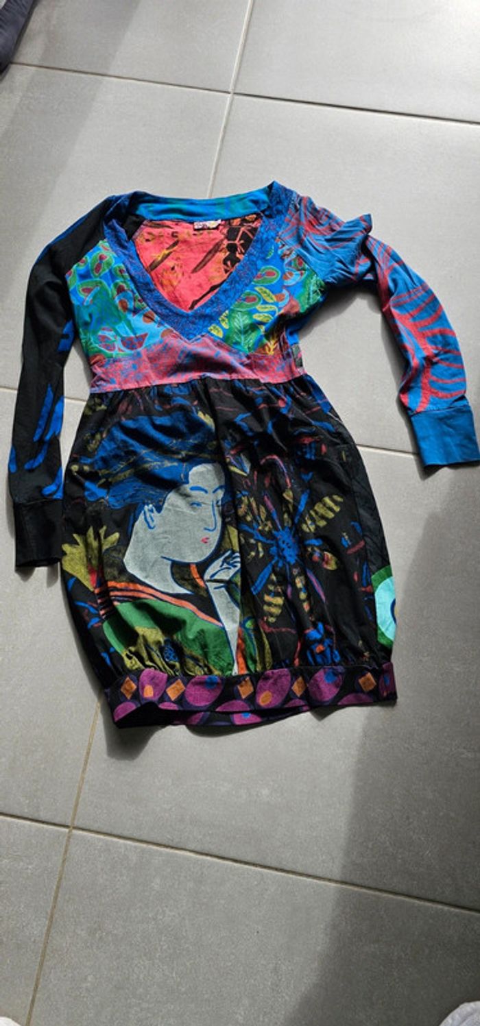 Jamais porté jolie robe esprit Desigual taille 38, très belle qualité toucher doux et joli colori