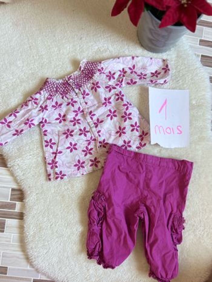 Ensemble violet rose et blanc Marque petit kimbaloo Taille 1 mois En très bon état