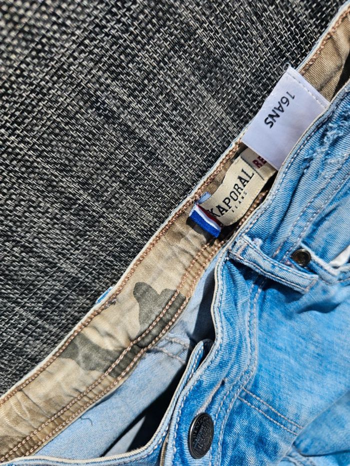En très bon état bermuda jean Kaporal taille 16 ans équivalent a un 36 que mon fils a porté