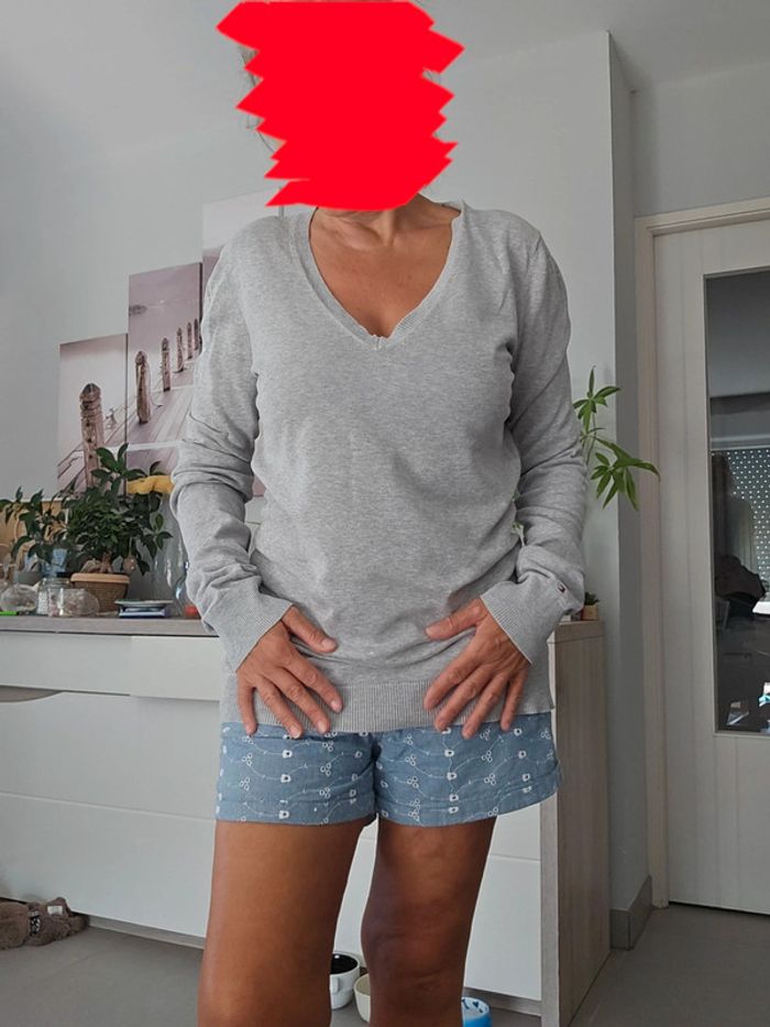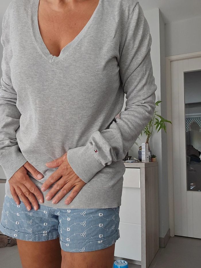 Pull gris Tommy Hilfiger col V taille M - photo numéro 1