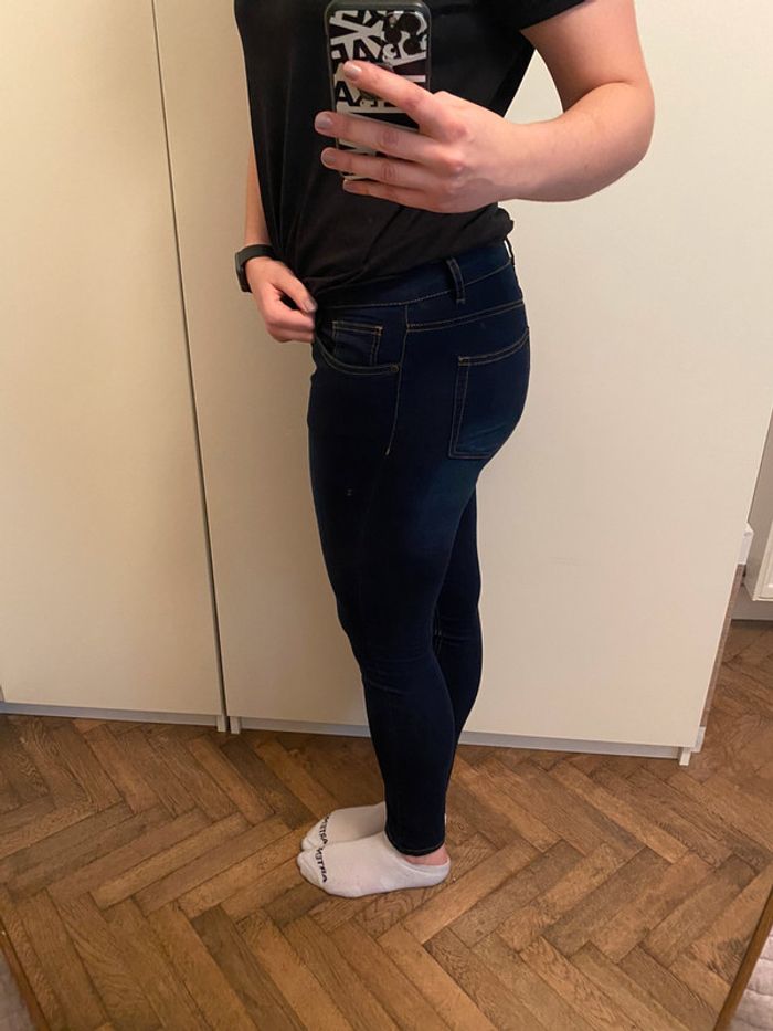 porté. bon état. deux poches avant et deux arrières. fermeture éclair.
