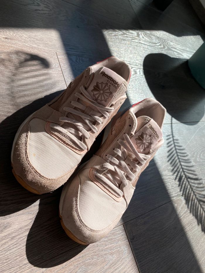 Portées quelques fois. Très bon état. Pièce renforcée en plastique sur le talon. Pièces en daim et toile
