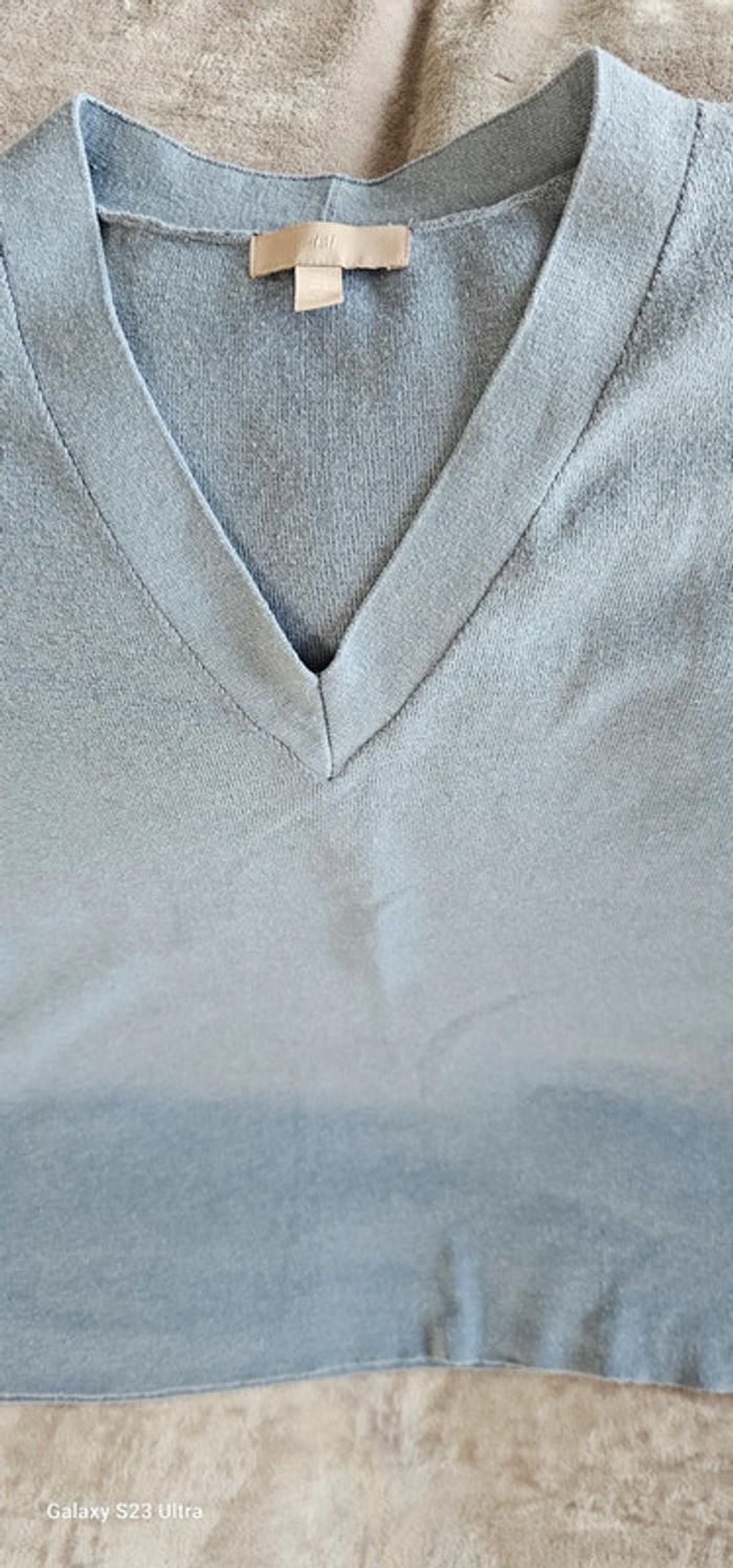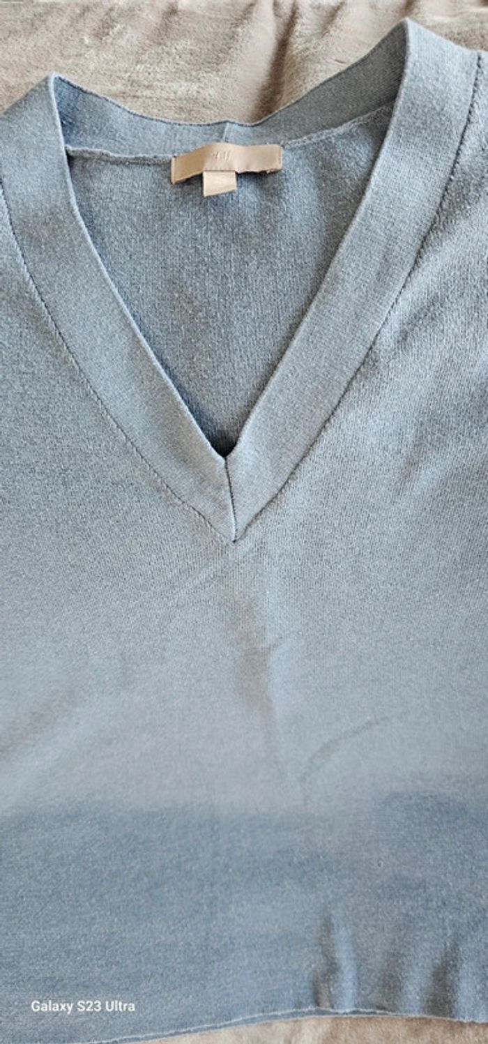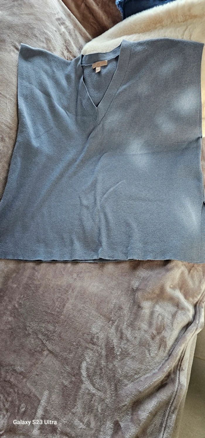 En très bon état très joli pull poncho taille L bleu poudré très joli colori et matière douce