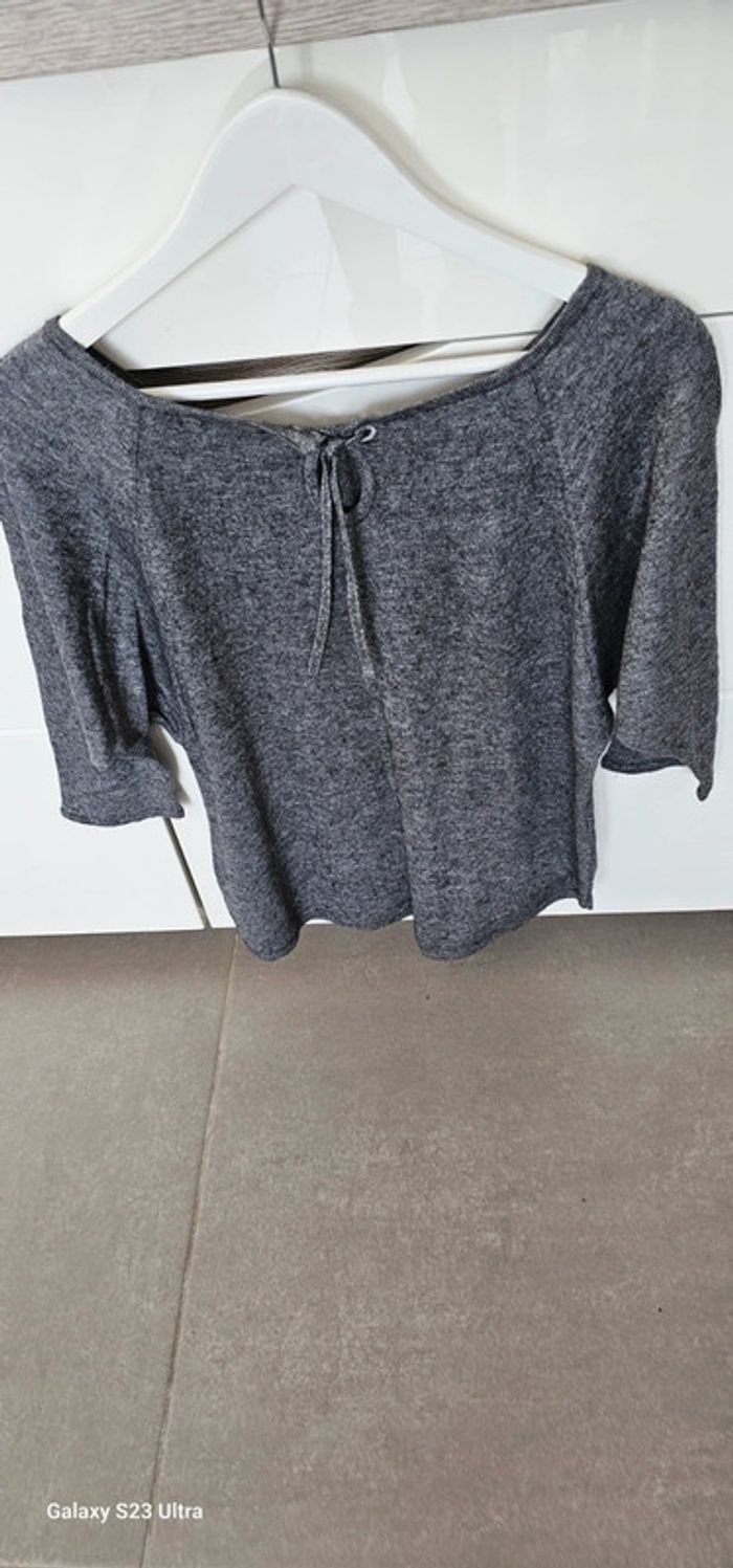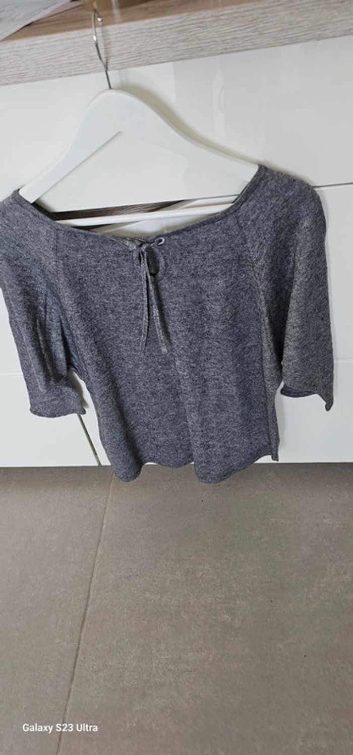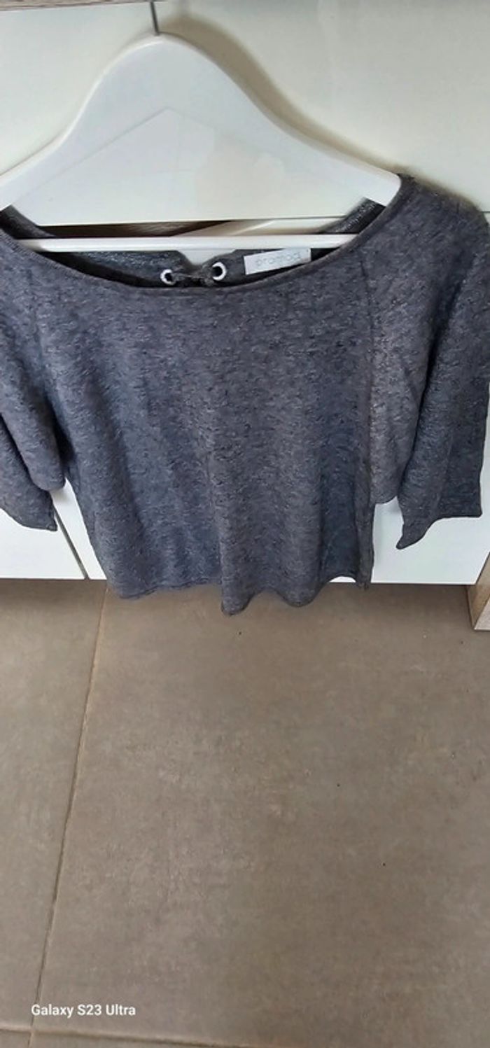 En très bon état joli pull Promod gris avec nœuds derrière manches 3/4 taille 40