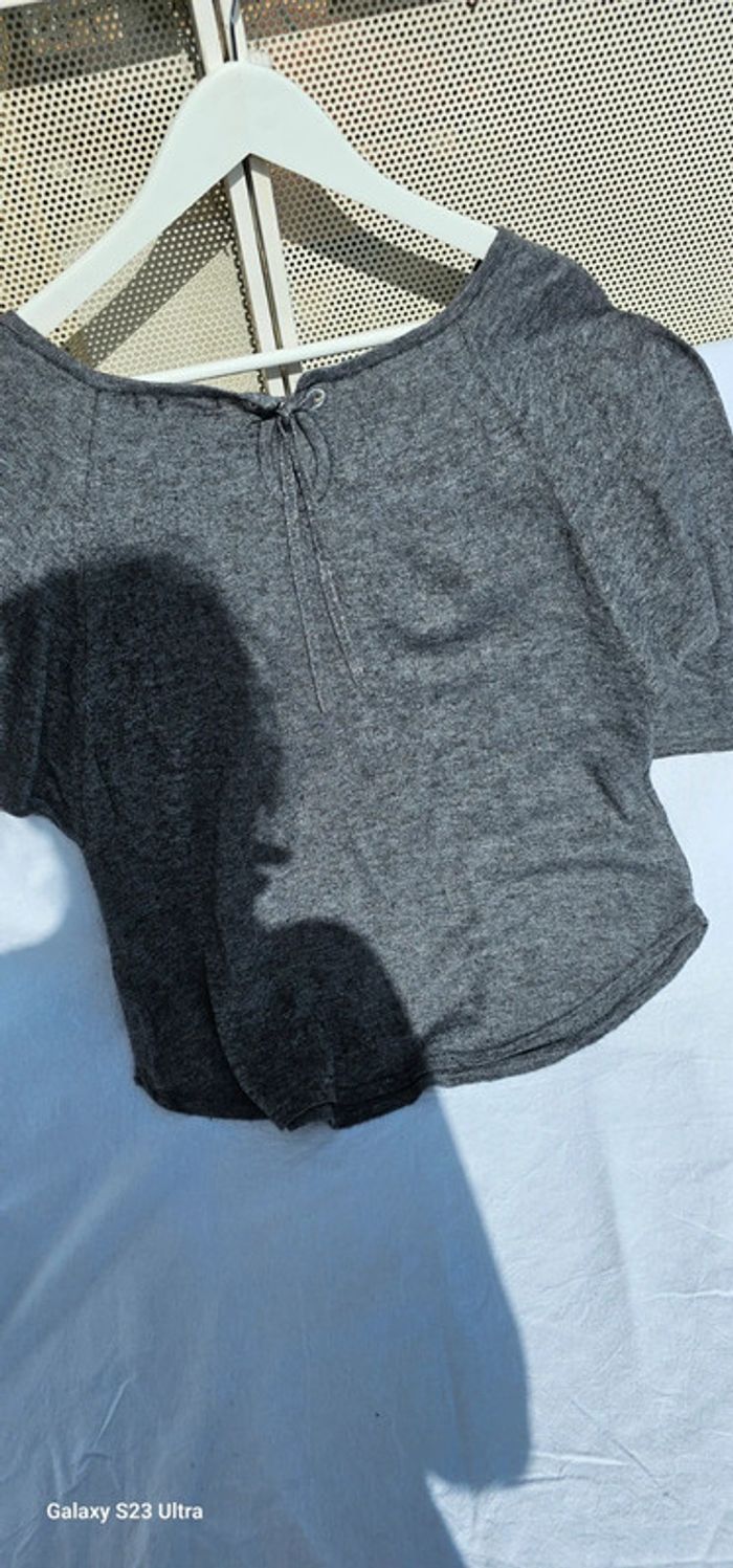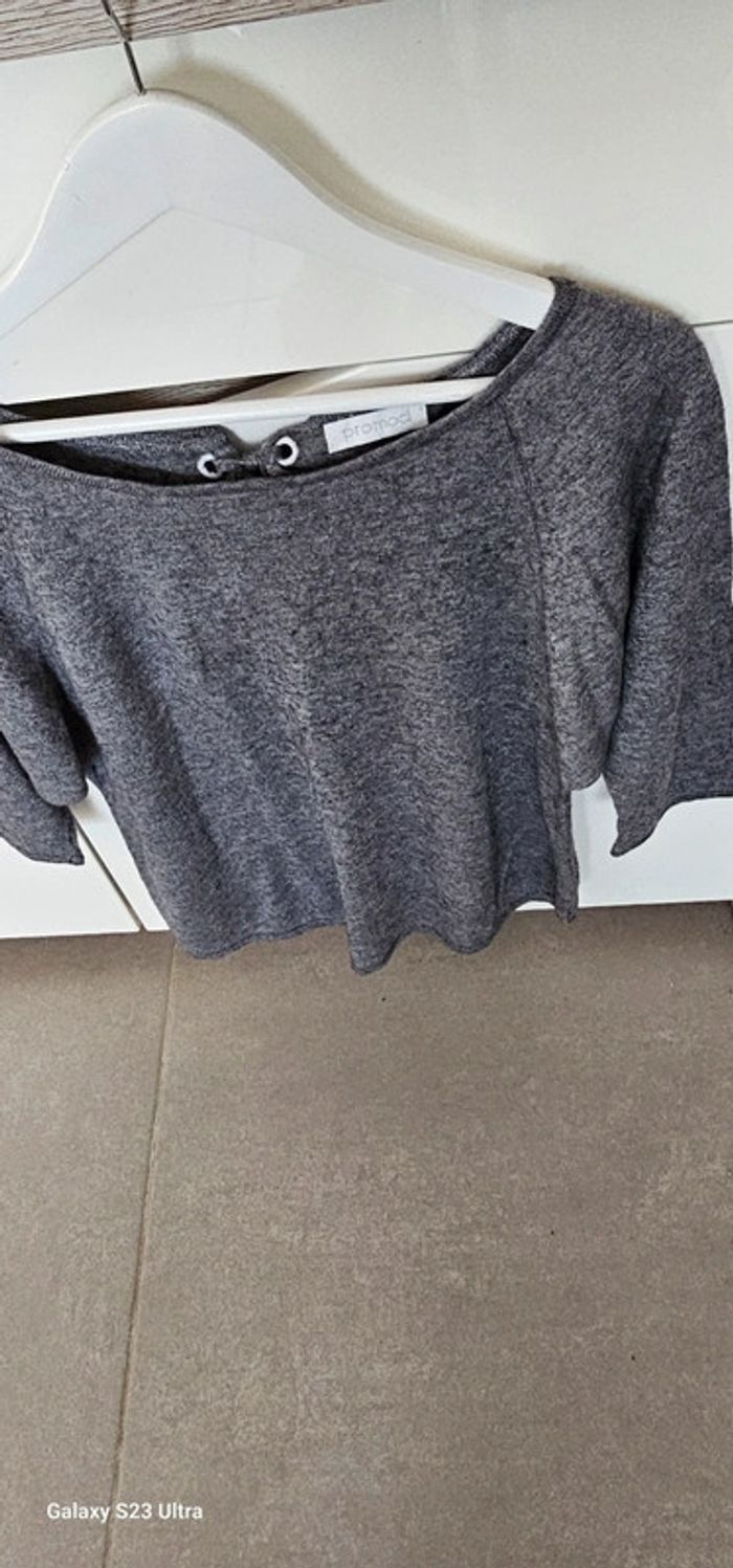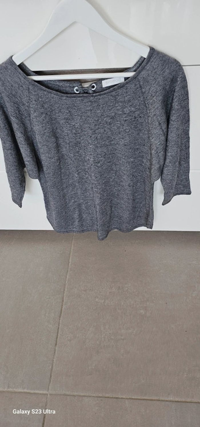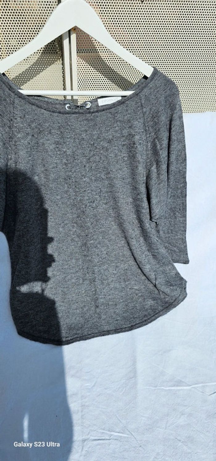 En très bon état joli pull Promod gris avec nœuds derrière manches 3/4 taille 40