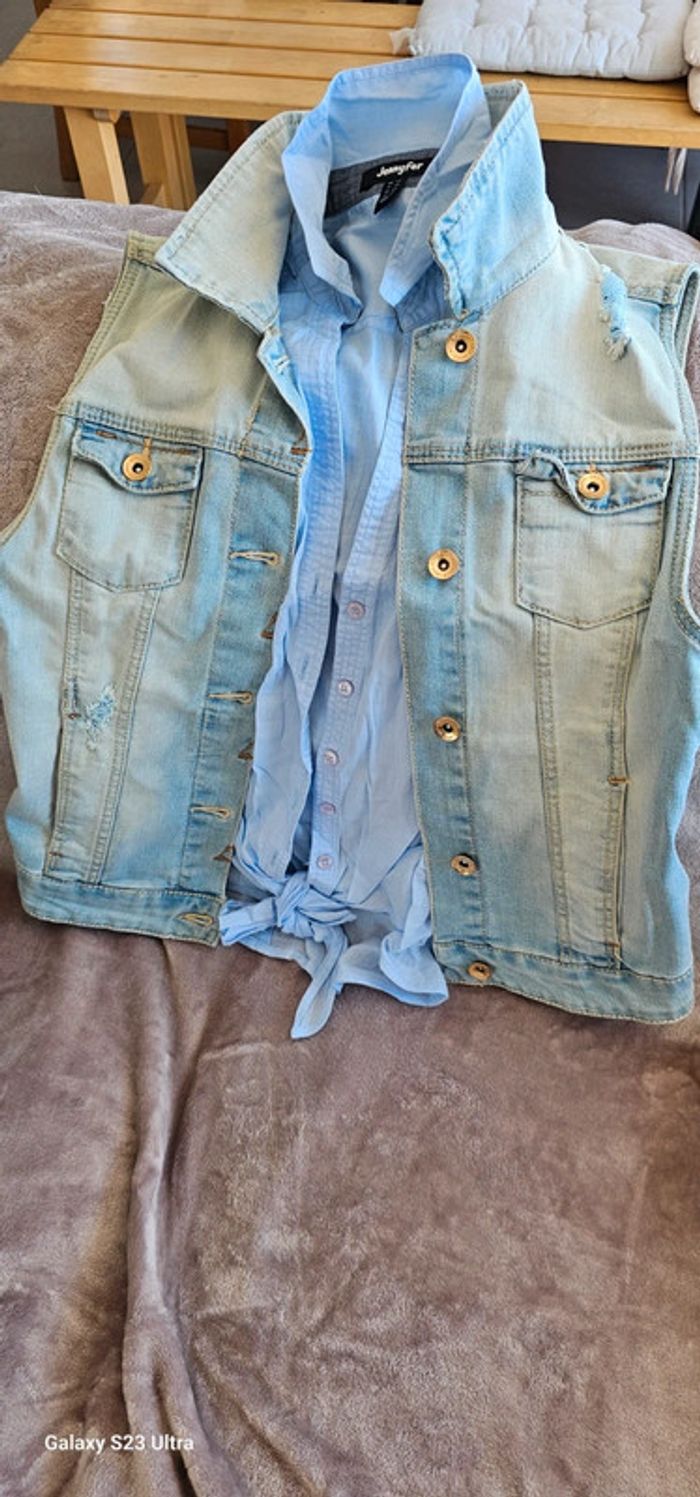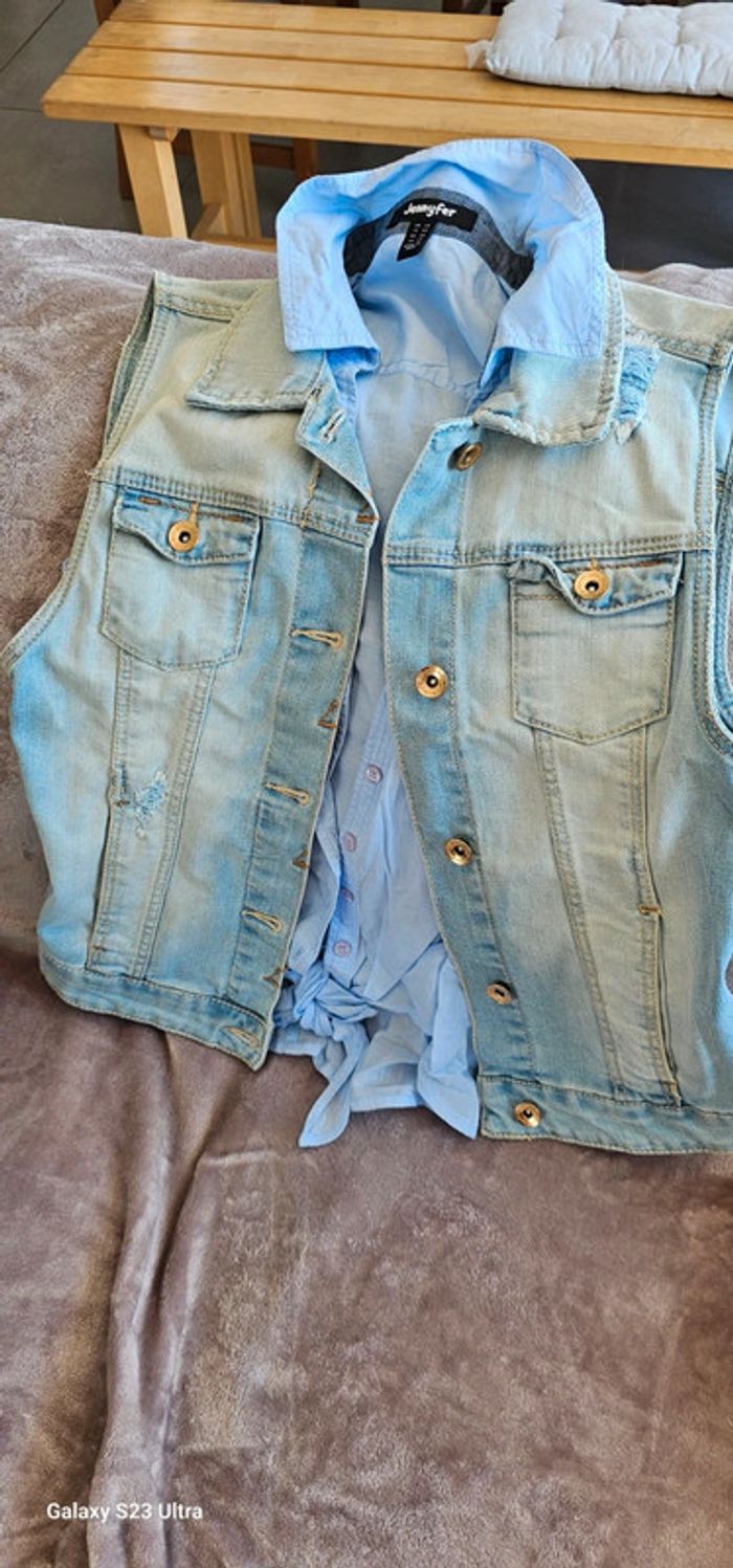 Veste jean sans manches Zara offert pour cet achat chemises sans manche bleu lavande Jennyfer taille 34