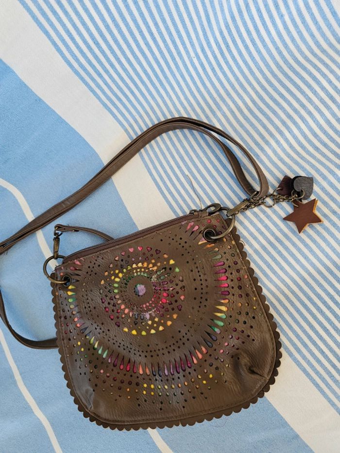 Joli sac zippée fantaisie avec poches intérieur extérieur zippée breloques servi 1 fois valeur 45 euros