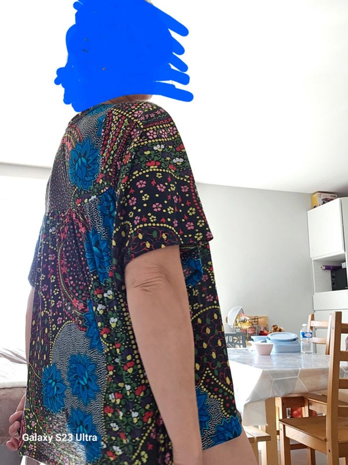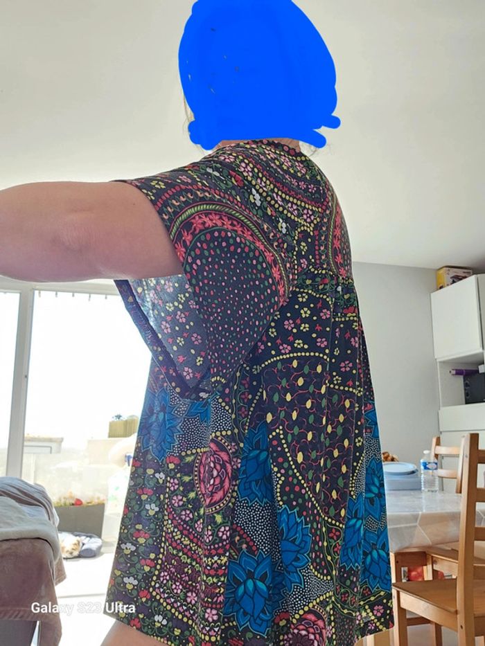 Porté 2 ou 3 fois jolie tunique fantaisie taille 38/40 manches évasée coupe évasé