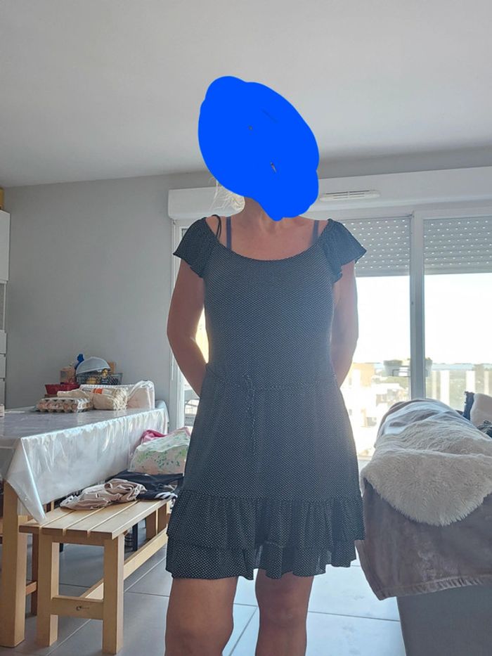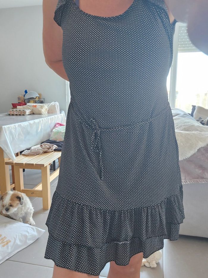Jolie robe de saison matiere très agréable et fluide robe mng avec finitions volants en bas et emmanchures