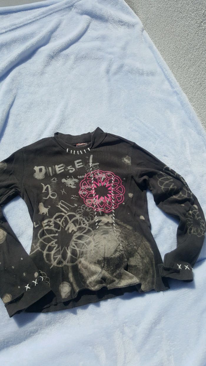 En tres bon etat tee shirt manches longues Diesel taille 6 ans J ai coupé les etiquettes car ca genait ma fille N hesitez pas a consulter mes autres ventes de marque enfants