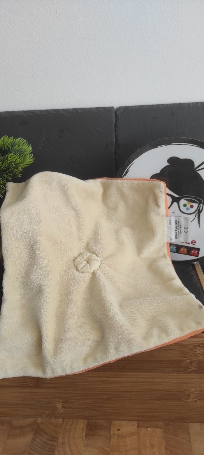 Doukidou Doudou Vache Plat Carré Orange Bleu Jaune Taches manon et valentin nuage