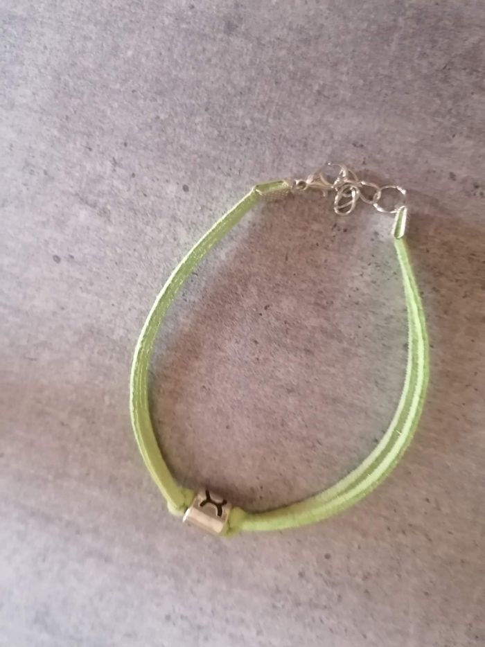 Bracelet du signe astrologique du Taureau. Ici il est vert car c'est la couleur associé à ce signe mais il est possible de faire de la couleur et de la taille de votre choix (en dernière photo vous trouverez les autres signes avec leur couleur)