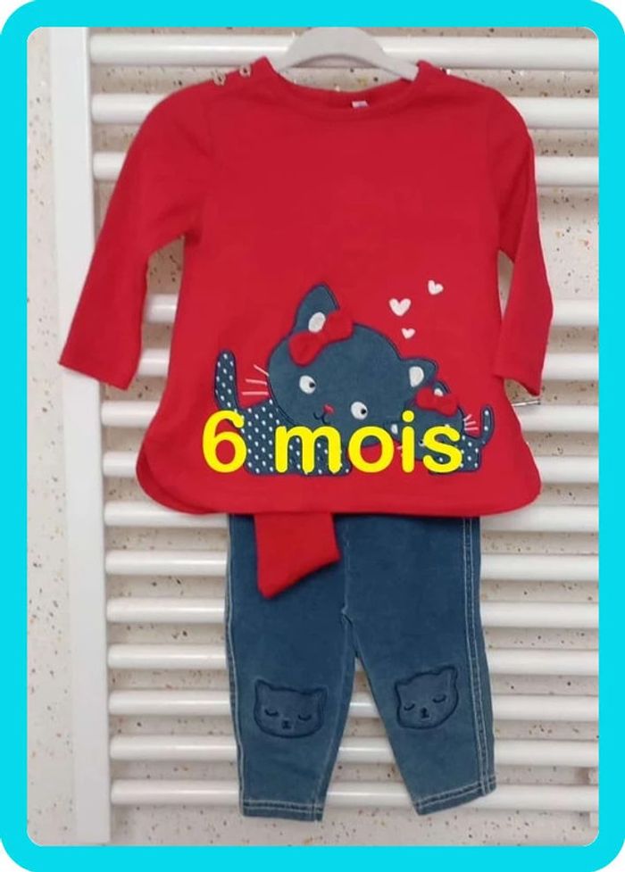 Ensemble tee shirt manche longue + jeans +chaussette Taille 6 mois - photo numéro 1