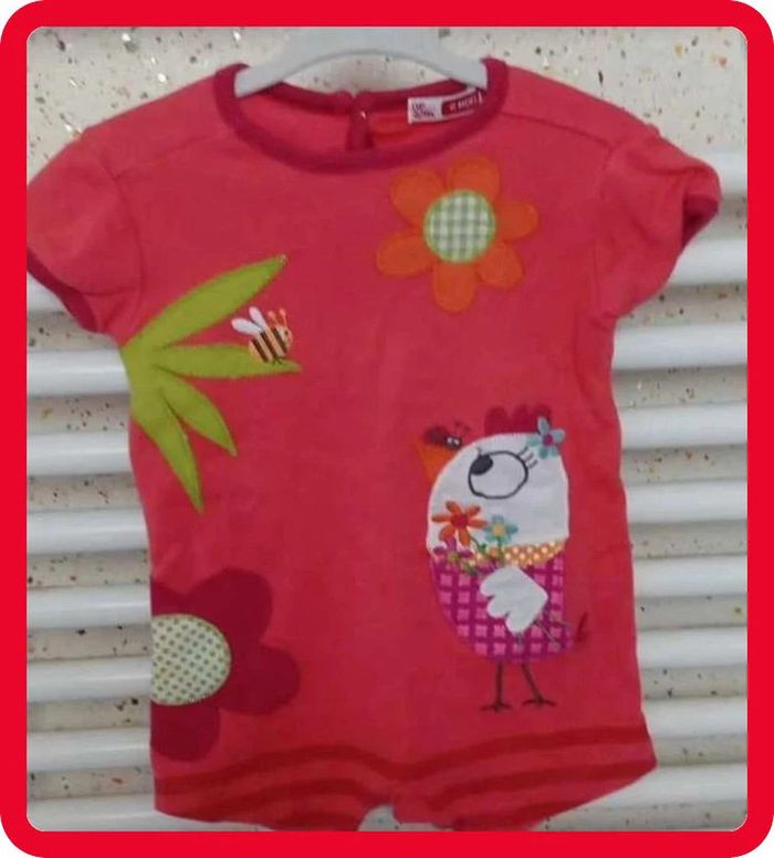 Barboteuse manche courte corail motif multicolore DPAM 6 mois