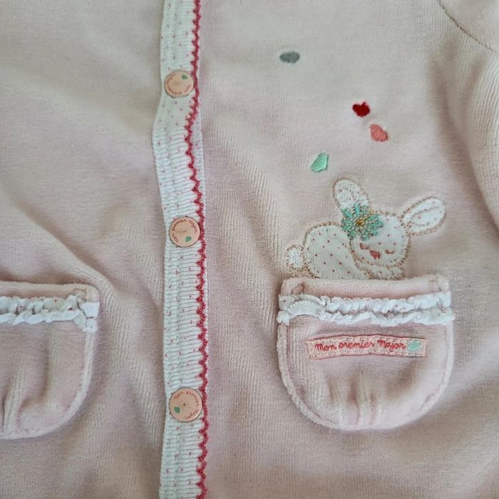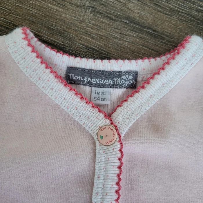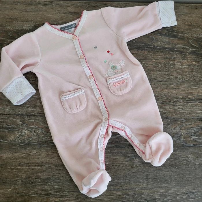 Sergent Major Taille 1 mois Pyjama en coton velours rose Excellent état proche du neuf, porté 1 ou 2 fois Idéal 1ere tenue maternité