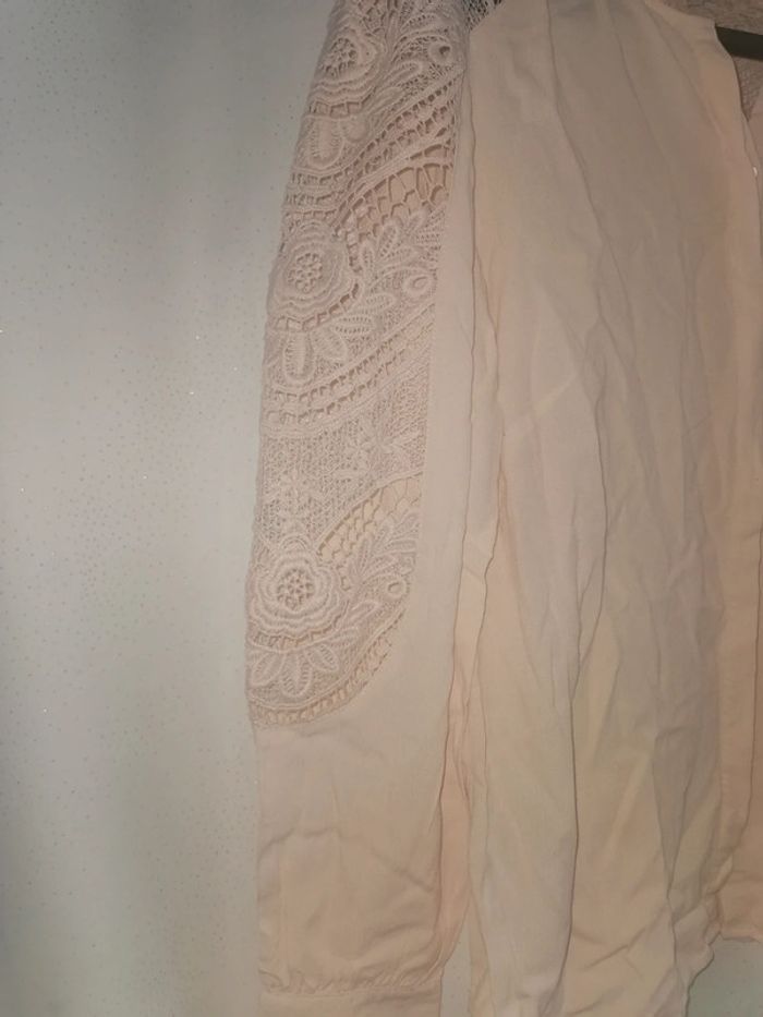 Chemisier couleur rose nude détails dentelle sur les bras Promod