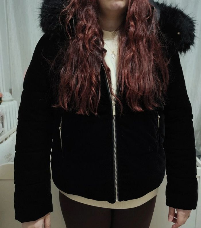 Manteau / doudoune effet velours marque Caroll taille L Très bon état Capuche non amovible / fourrure amovible
