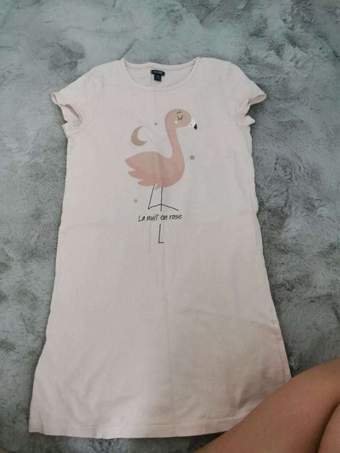 Chemise de nuit flamant rose taille 10 ans kiabi micro tache à peine visible