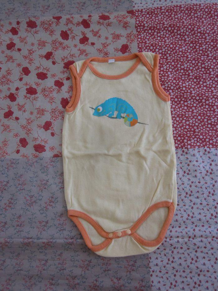 Body débardeur Jaune, bordure orange, motif iguane Coton Excellent état Taille 18 mois / 81 cm Nombreuses annonces disponibles Dressing trié par catégories et tailles #Baby_Boy_18_mois