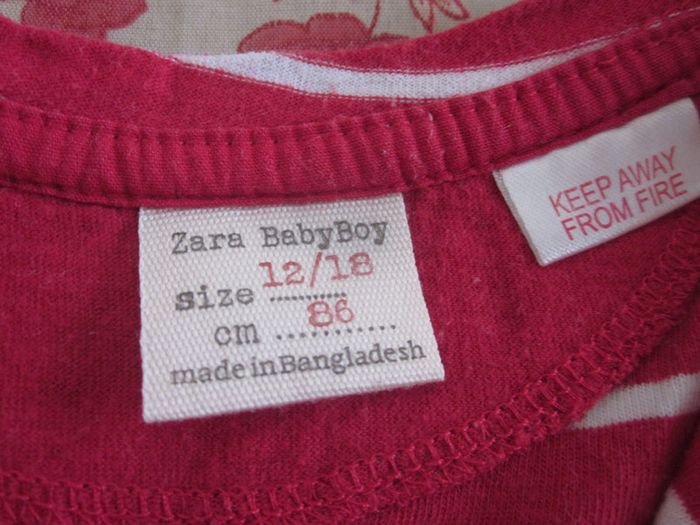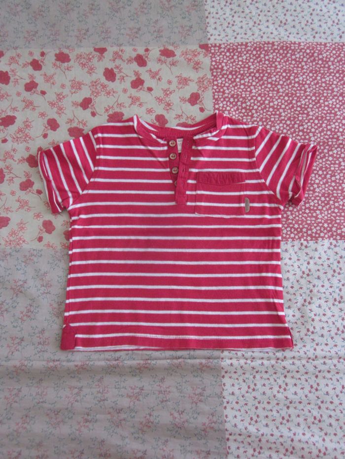 T-Shirt manches courtes rouge rayé blanc 18 mois