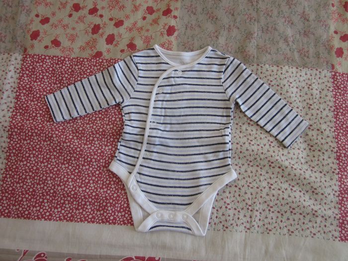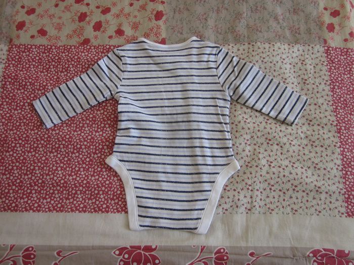 Body manches longues ouverture devant blanc rayé bleu
