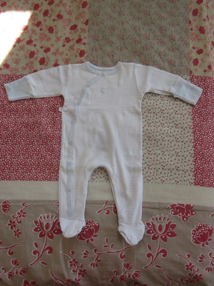 Pyjama coton rayé bleu clair et blanc 6 mois - photo numéro 1