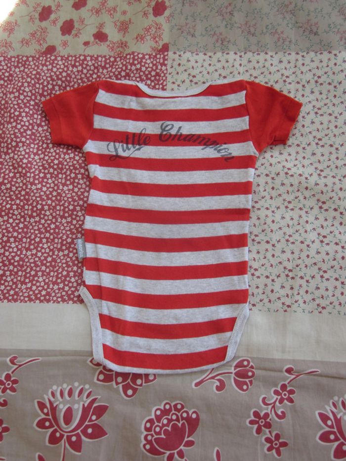 Body manches courtes rouge et gris 6 mois - photo numéro 1