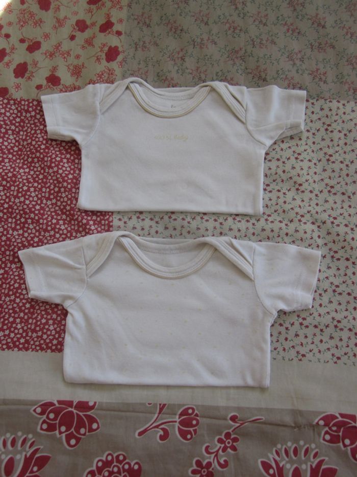 2 Body manches courtes Blanc, liseré jaune pale Coton Très bon état Tex baby, 6 mois Nombreuses annonces disponibles Dressing trié par catégories et tailles #Baby_Boy_6_mois #Baby_Girl_6_mois