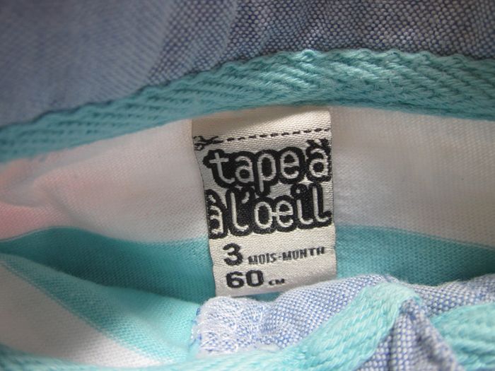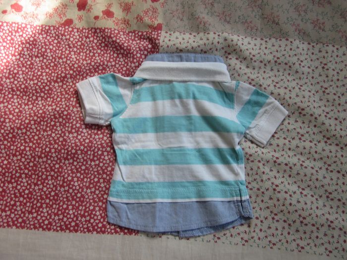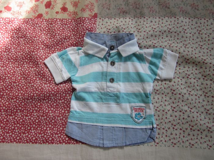 Polo manches courtes rayé blanc et turquoise 3 mois