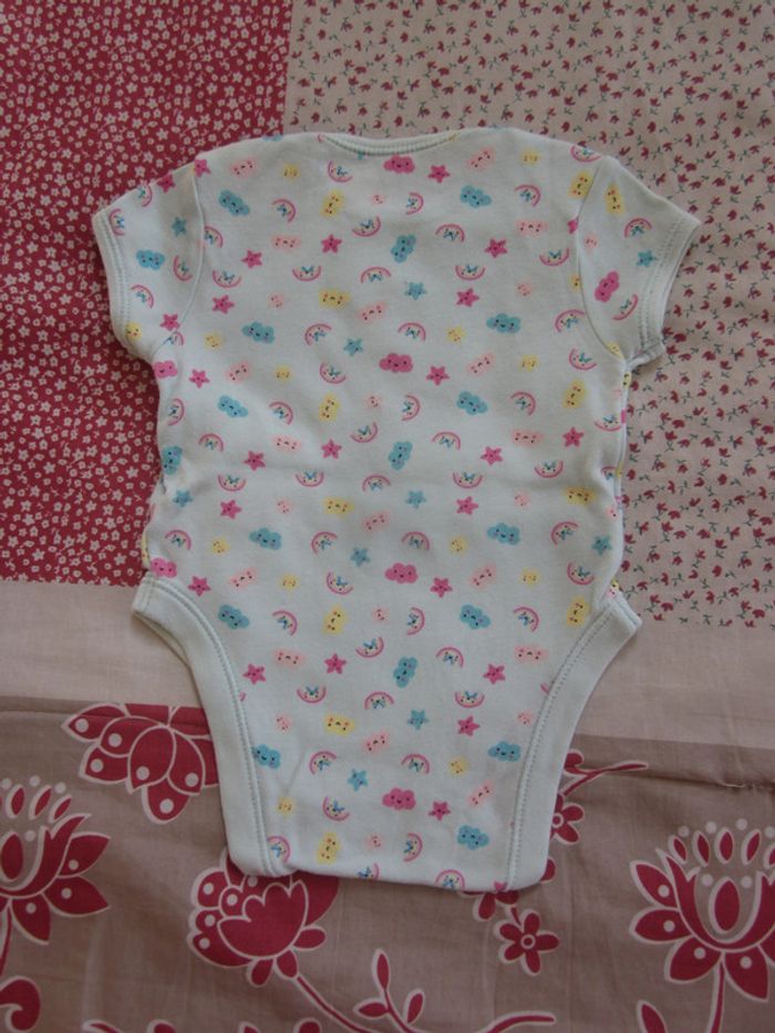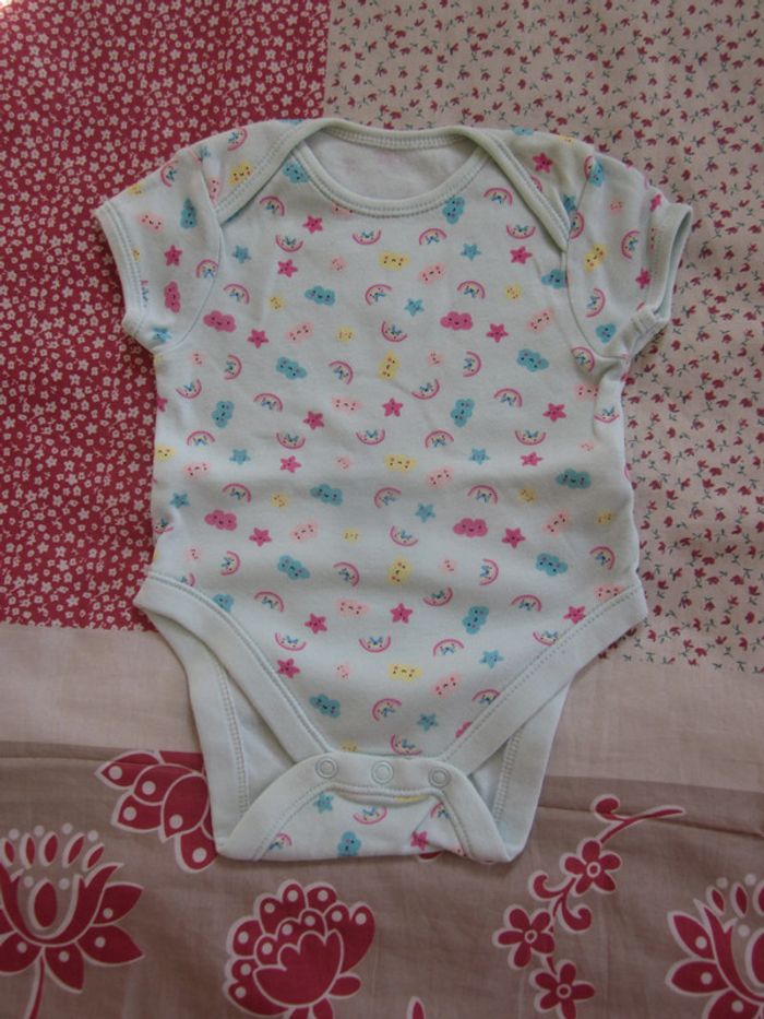 Body manches courtes Vert pale motif arc-en-ciel, étoiles, nuages (bleu, jaune, rose) Coton Excellent état Primark, 3 mois Nombreuses annonces disponibles Dressing trié par catégories et tailles #Baby_Boy_3_mois #Baby_Girl_3_mois