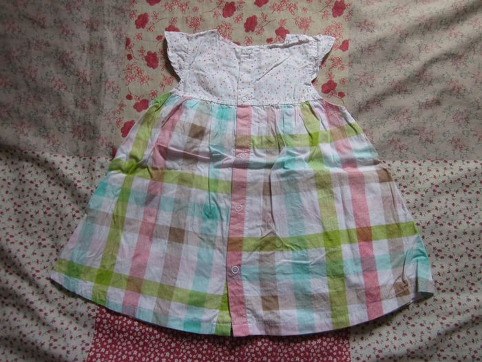 Robe été sans manches et culotte (couvre couche) assortie Boutonnée haut du dos Blanc, carreaux rose, vert, turquoise Coton Neuf Babygro, 9 mois / 71 cm Nombreuses annonces disponibles Dressing trié par catégories et tailles #Baby_Girl_9_mois