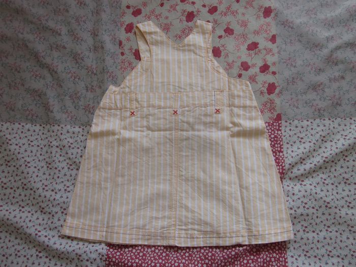 Robe salopette toile jaune et blanche 12 mois - photo numéro 2