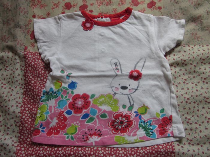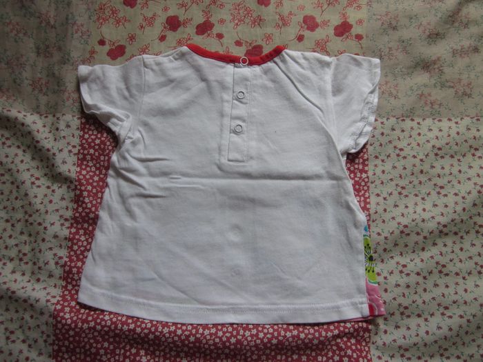 T-Shirt boutonné haut du dos blanc motif fleurs