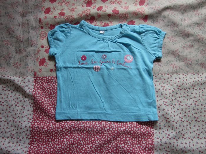 T-Shirt manches courtes bleu turquoise 9 mois - photo numéro 1