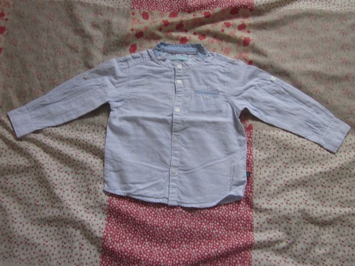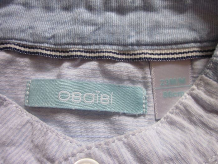 Chemise manches longues Col rond, petite poche avec liseré bleu Rayé bleu clair et blanc Coton Très bon état Obaibi, 23 mois / 86 cm Nombreuses annonces disponibles Dressing trié par catégories et tailles #Baby_Boy_24_mois