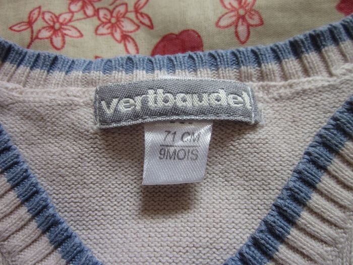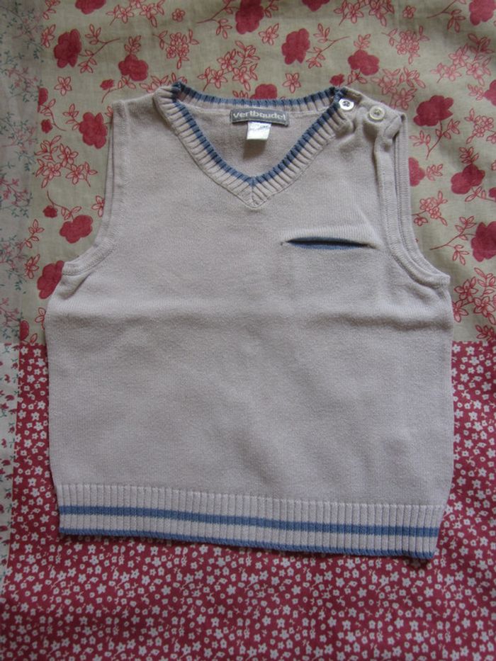 Pull sans manches Petite poche sur l'avant, motif Happy Beige et bleu clair Coton Très bon état Vertbaudet, 9 mois / 71 cm Nombreuses annonces disponibles Dressing trié par catégories et tailles #Baby_Boy_9_mois