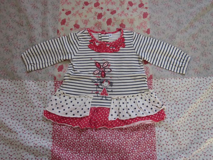 Robe/tunique écru bleue rouge 6 mois - photo numéro 2