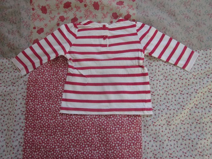 T-Shirt manches longues rayé écru et rouge 6 mois - photo numéro 3