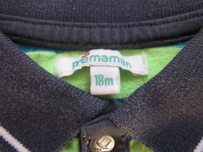 Polo manches longues Boutonné devant Bleu rayé vert, col bleu marine Coton, polyester Bon état Premaman, 18 mois Nombreuses annonces disponibles Dressing trié par catégories et tailles #Baby_Boy_18_mois