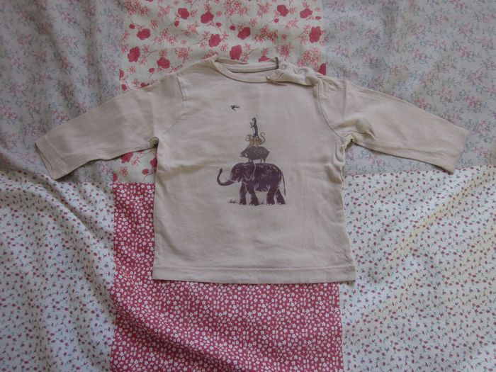 T-Shirt manches longues Beige, motif animaux Coton Très bon état Bout'chou, 12 mois / 74 cm Nombreuses annonces disponibles Dressing trié par catégories et tailles #Baby_Boy_12_mois