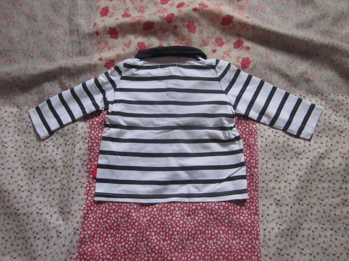 Polo manches longues blanc rayé noir 6 mois - photo numéro 3
