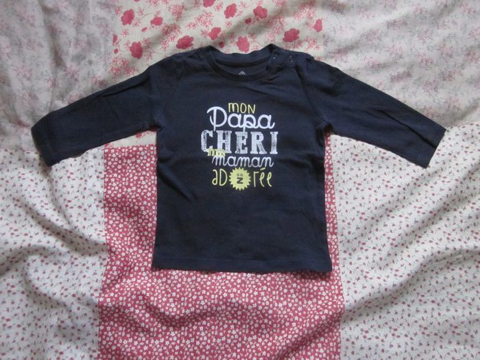T-Shirt manches longues Boutonné sur une épaule Bleu marine motif "Mon papa chéri ma maman adorée" Coton Excellent état Grain de Blé, 6 mois / 68 cm Nombreuses annonces disponibles Dressing trié par catégories et tailles #Baby_Boy_6_mois