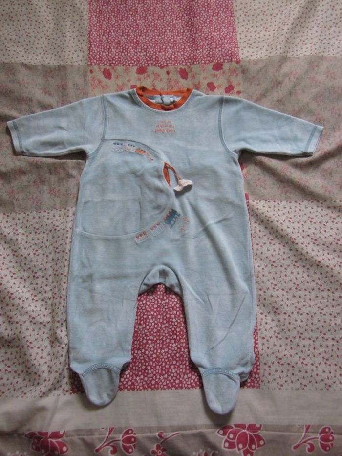 Pyjama velours ouverture dos Turquoise, motif petit train Boutonné à l'entrejambe Coton, polyester Très bon état Natalys, 6 mois Nombreuses annonces disponibles Dressing trié par catégories et tailles #Baby_Boy_6_mois