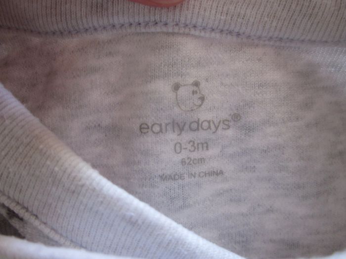 Pyjama velours 2 pièces Gris motifs petites étoiles Coton, polyester Bon état (la bordure du haut du pyjama a décolorée) Early days, 3 mois / 62 cm Nombreuses annonces disponibles Dressing trié par catégories et tailles #Baby_Boy_3_mois #Baby_Girl_3_mois