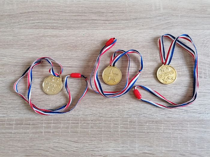 Lot de 3 Médailles en plastique 📦 N'hésitez pas à consulter toutes mes ventes afin de bénéficier de prix de lots et frais de port réduit. Dressing trié sur mon profil 😁 Vente de vêtements filles, garçon, femme et homme, jeux, articles de puériculture, beauté, ... ⚠️⚠️⚠️ A partir de : . 2 articles 5% . 3 articles 10% . 5 articles 25% . 10 articles 50% (uniquement sur les vêtements) ⚠️⚠️⚠️ 📢 1 article en cadeaux à l'achat de min 10€ de vêtements. Vous pouvez le choisir dans mon dressing avec ce emoji 🎁 🔔 Pensez à vous abonné afin de voir mes futurs ventes. #jeuxenfant #jeuxenfantcin #jeuxcin #enfant