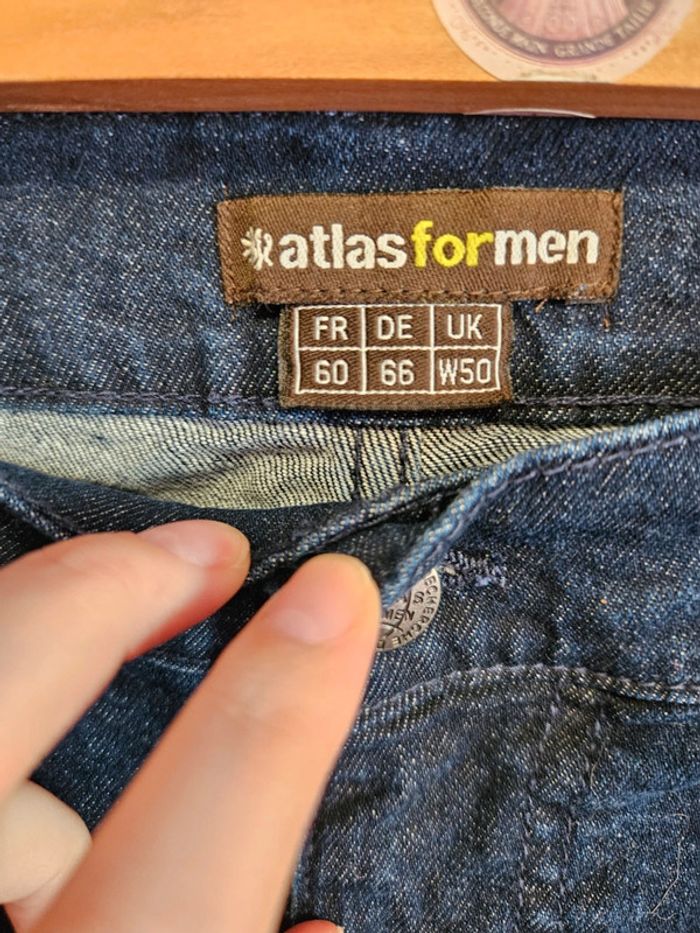 Vend Jean droit, très bon état. Longueur entrejambe 70cm. Taille à plat 58cm. Taille élastiquée sur les côtés. PAS D'ENVOI VINTED GO! #jeanhomme60 #atlasformen60 #homme60 #laboutiquedekatminhomme