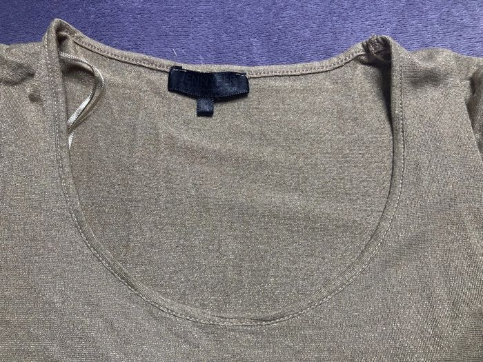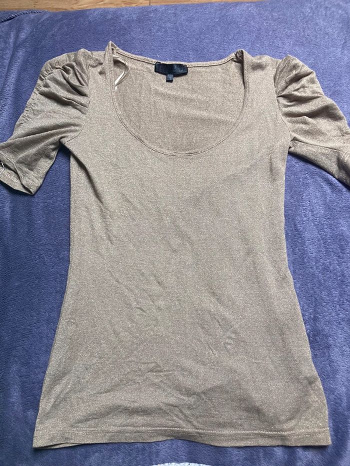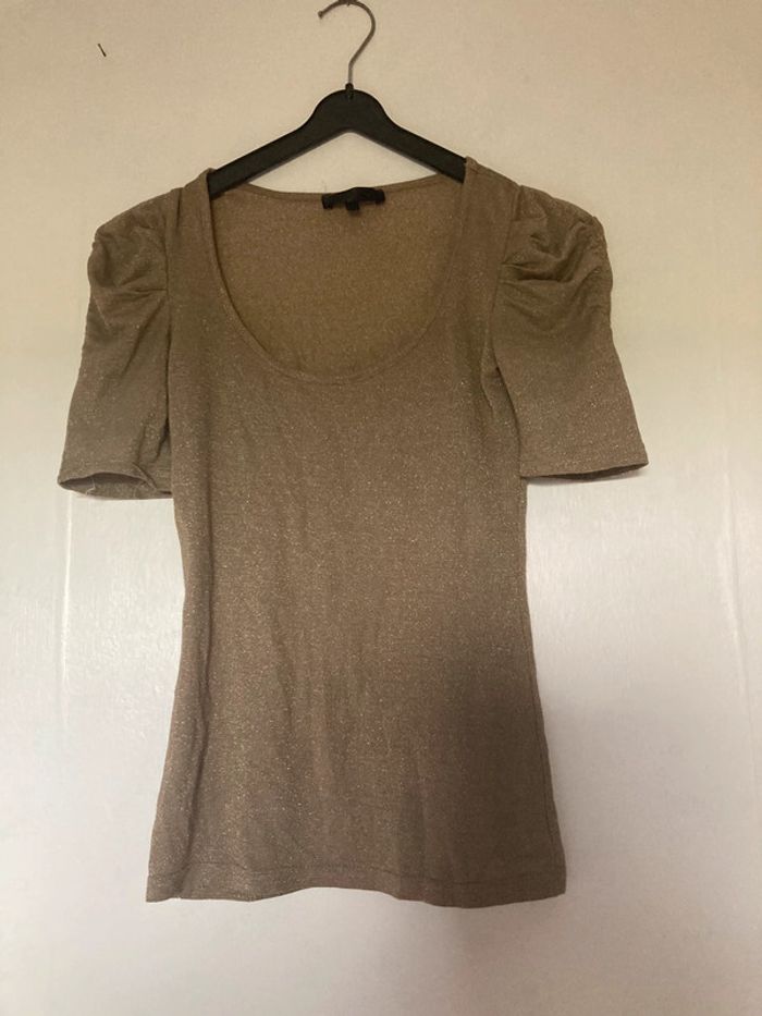 TEE shirt Jennifer taille S doré à paillettes porté souvent, on voit pas trop sur les photos la brillance des paillettes. Très bon état